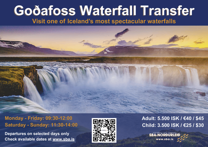 15:00 Departure from Goðafoss Waterfall